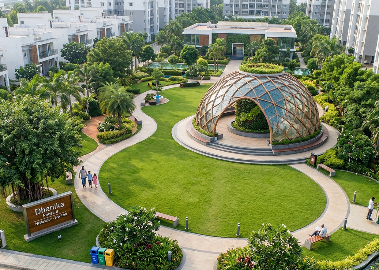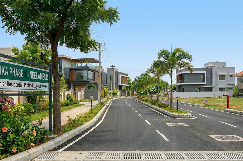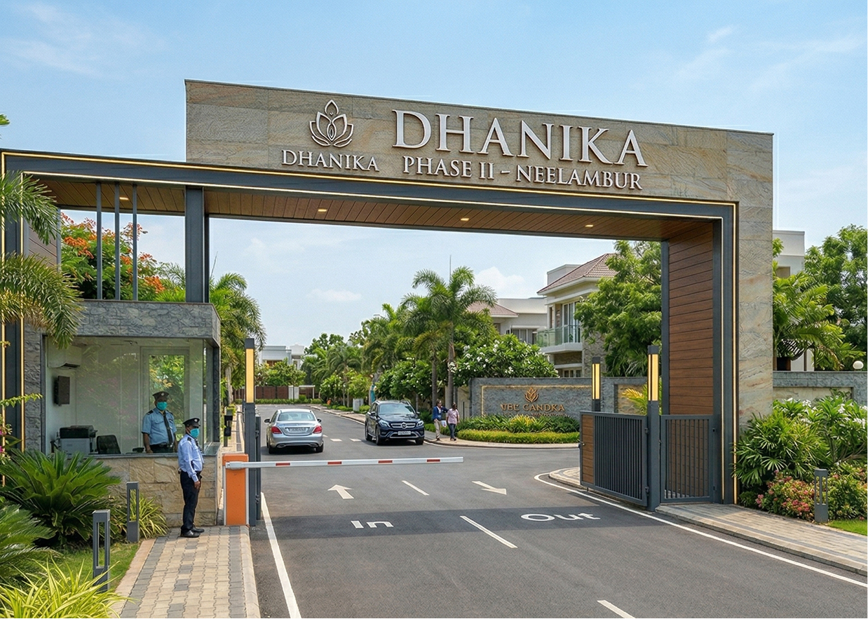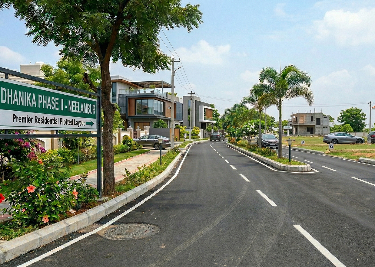 One of the fastest-growing residential areas close to Coimbatore is Neelambur, where Dhanika Phase II is a luxurious, high-end residential plotted development. The project, which spans 20 acres, offers a thoughtfully built residential neighbourhood that delivers the ideal fusion of modern living, convenience, and comfort. The project guarantees good access to the city while preserving a tranquil residential ambiance thanks to its strategic location just 1.5 km from NH47.